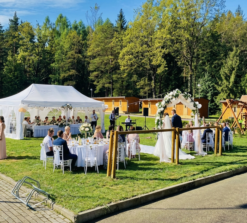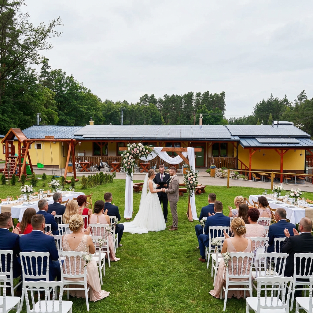 Romantická svatba v přírodě s naprostým soukromím v uzavřeném areálu nabízí ideální zázemí pro nezapomenutelný den. Prostorný areál je vyhrazen pouze svatební hostině, bez rušivých vlivů okolí, a vytváří tak klidnou atmosféru pro obřad, focení i večerní zábavu.