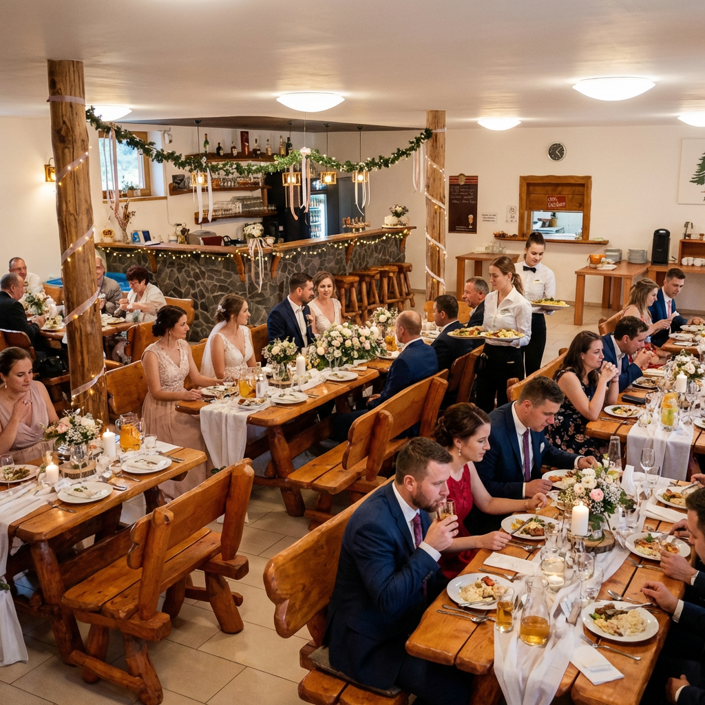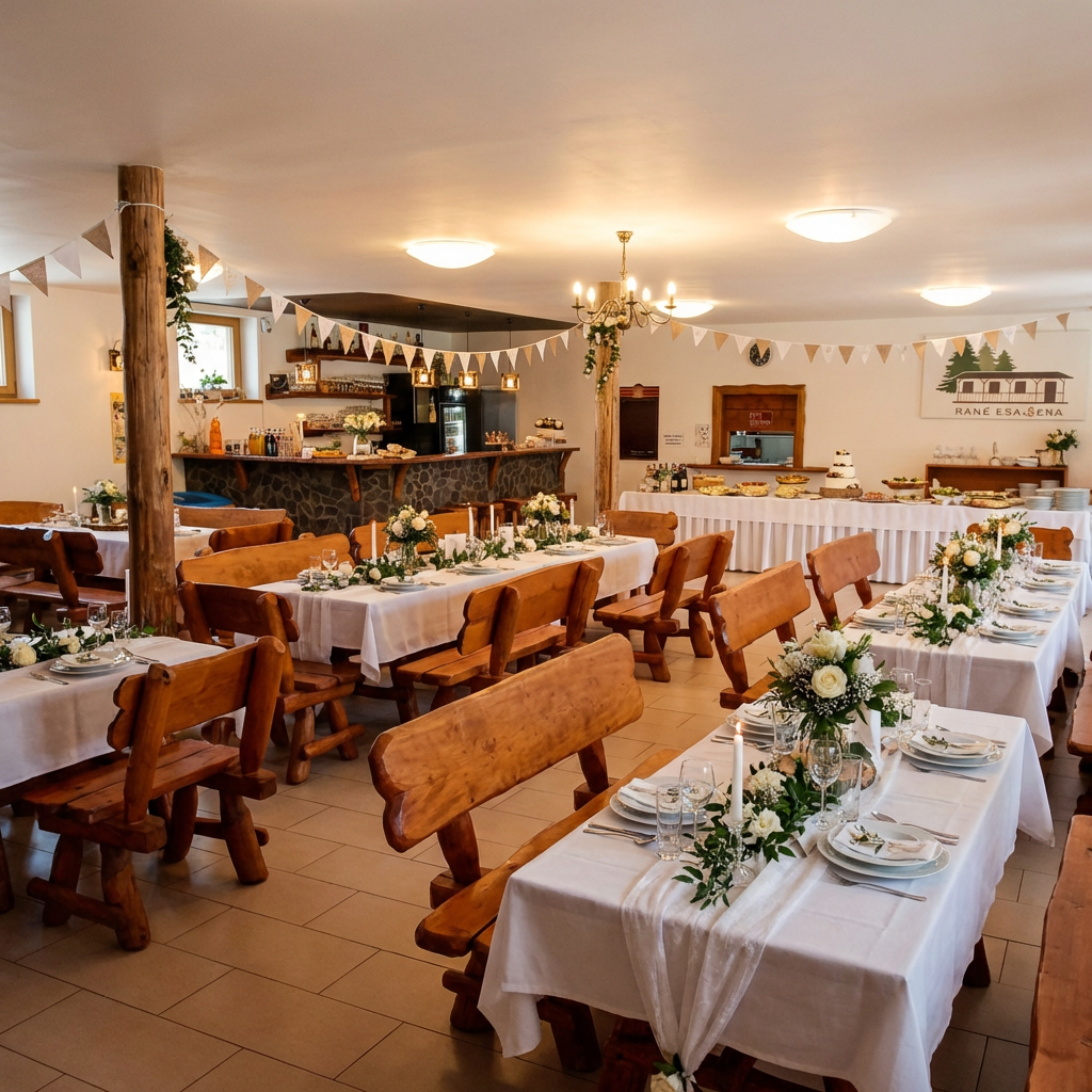 Součástí služeb je kompletní svatební catering. Zajistí se slavnostní hostina, bohatý raut i snídaně na druhý den, aby si každý host užil svatební víkend bez starostí. Areál je možno také rezervovat na více dní, abyste měli prostor si vše v klidu promyslet a připravit. Díky propojení ubytování, stravování a uzavřeného prostoru vzniká ideální místo pro svatbu na jednom místě.
